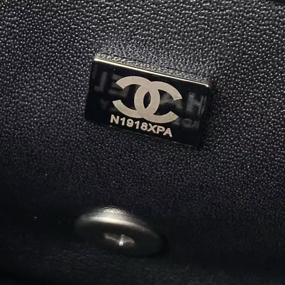 23C AS1786 Mini Square Pearl Embossed Flap Bag Antique Gold Hardware Black