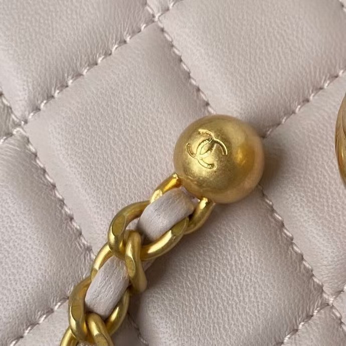 23C AS1786 Mini Square Pearl Embossed Flap Bag Antique Gold Hardware Apricot