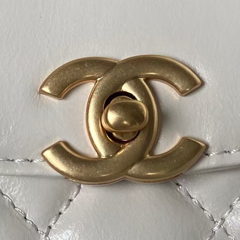 AS4385 Mini Flap Bag Pearl Lambskin Faux Pearl & Gold Metal White