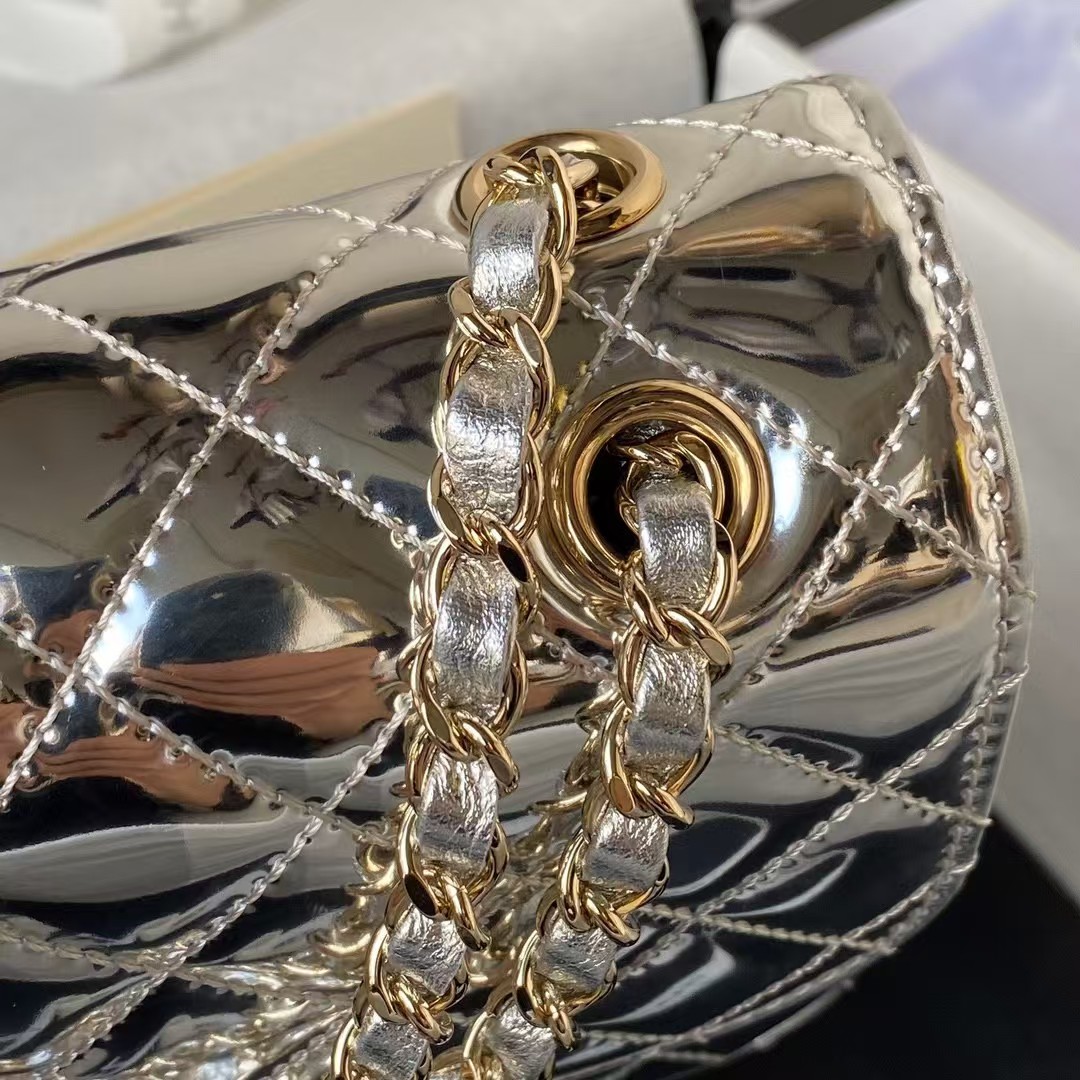 AS4647 Mini Flap Bag With Star Coin Purse Metallic Calfskin & Gold Metallic Silver