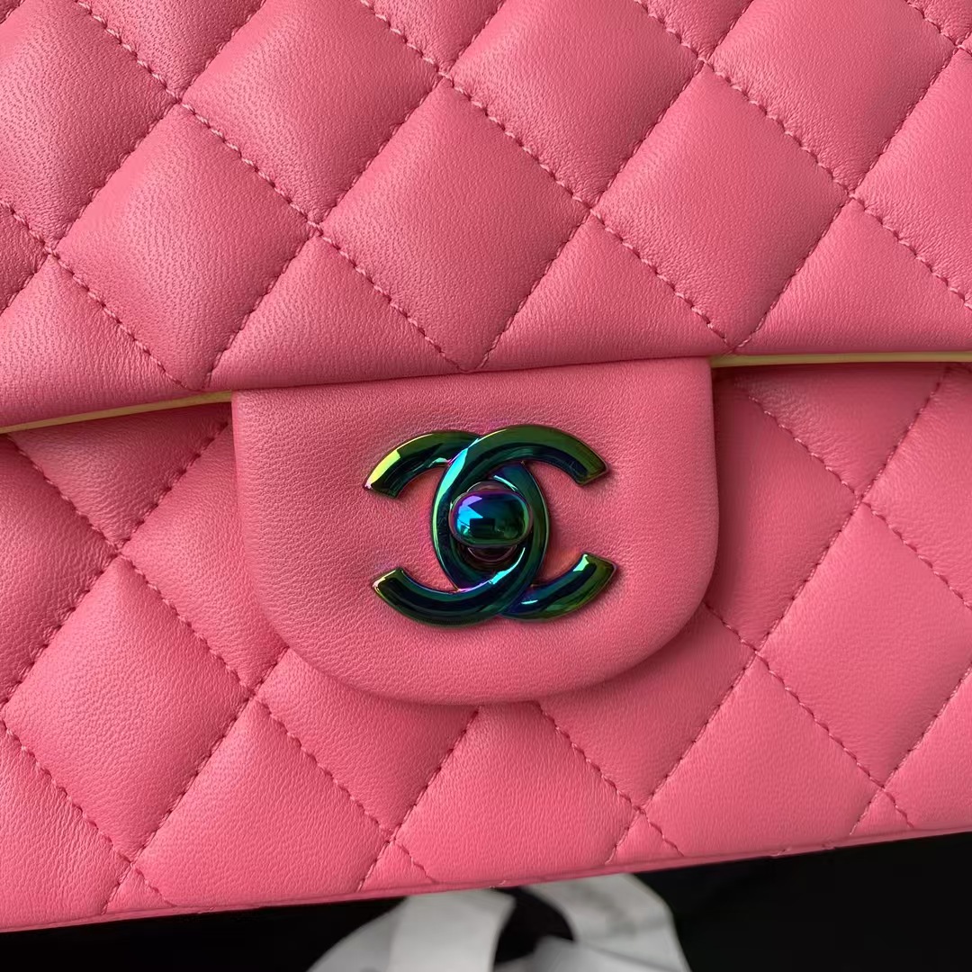 AS4986 Mini Flap bag Shiny Lambskin Imitation Pearls & Gold-Tone Metal Pink