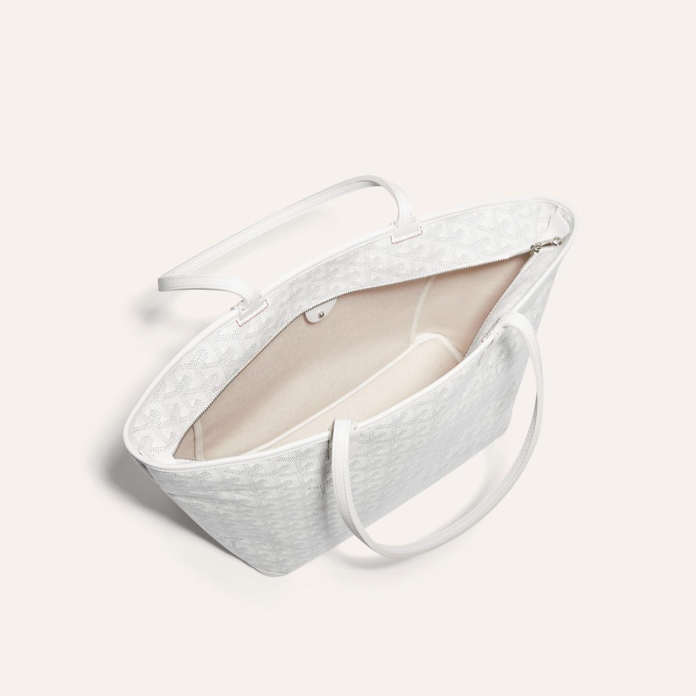 Goyardine Artois Tote PM White Canvas & Chevroches Calfskin Palladium Hardware